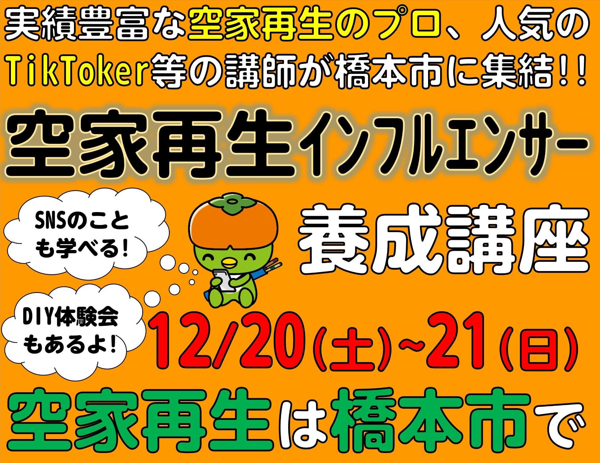 橋本市内の空家活用及び橋本市への移住を促進するためのプロジェクトとして、空家再生インフルエンサーの養成を目的とした講座を開催します。