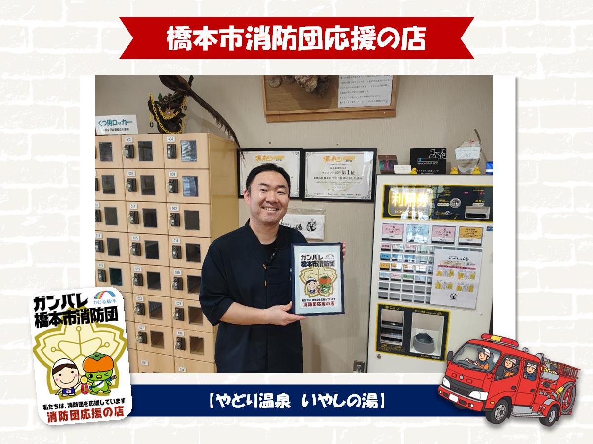 新たに「やどり温泉いやしの湯」さんに橋本市消防団応援の店にご登録いただきました!