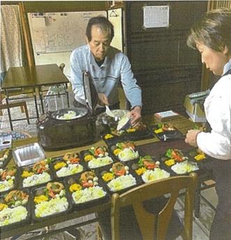 しげちゃんランチをお弁当屋さんの休日にお願いしています。ぽれぽれで作っていただけるため、準備から盛り付けまでお手伝いできます。この時に教えていただいたメニューを食堂や弁当配付などに活用でき、スタッフの研修としても活かされています。