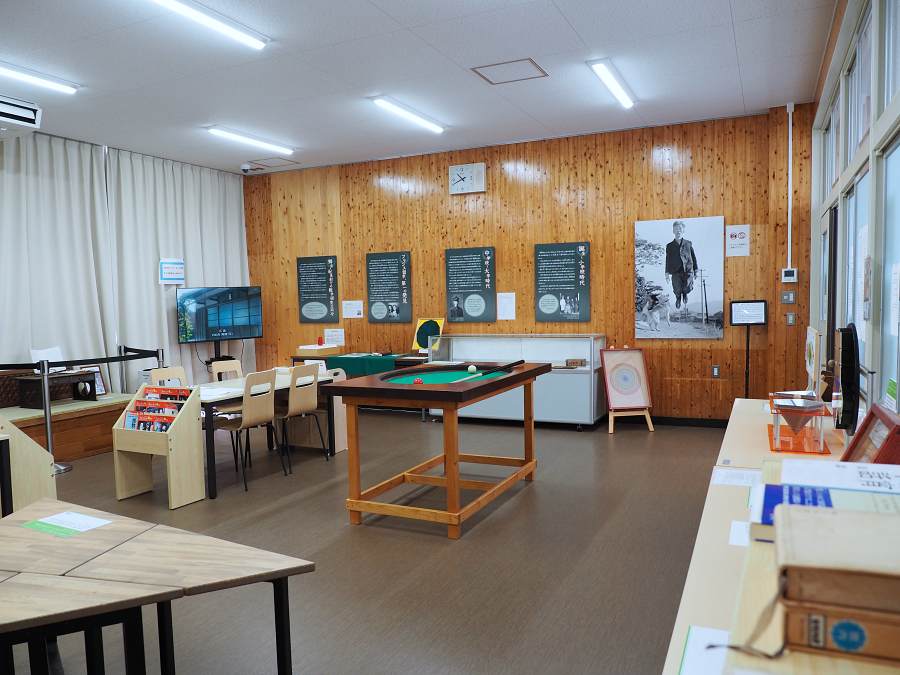 岡潔数学体験館は、柱本小学校の校舎の一部を活用して作られた施設です。橋本市ゆかりの世界的偉人であり、たくさんの数学の難問を解いた天才・岡潔博士。博士の「発見の喜び」を子どもたちにも感じてほしいという願いから、館内には触って遊べる手作りの木製教具やパズルがたくさん展示されています。