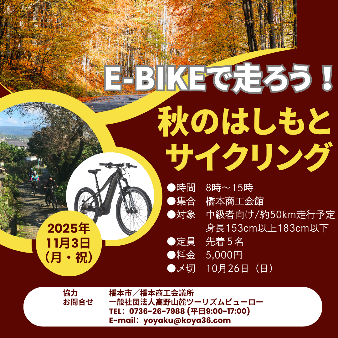 中級者向けサイクリング企画「E-Bikeで走ろう!秋のはしもとサイクリング」を開催します!