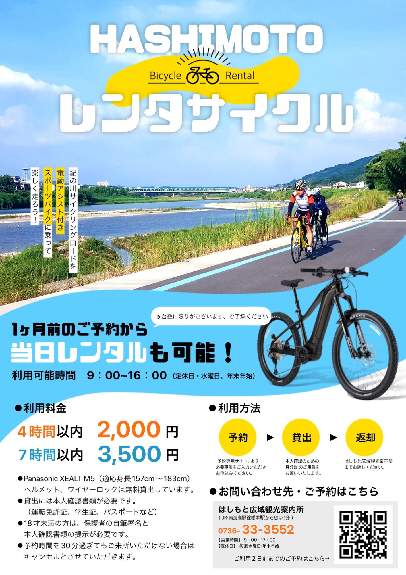 橋本市では気軽に観光地を周遊してもらえるよう、E-BIKEレンタサイクル(電動アシスト付きスポーツ自転車の貸出し)やレンタサイクル(折りたたみ自転車の貸出し)をしています🚲