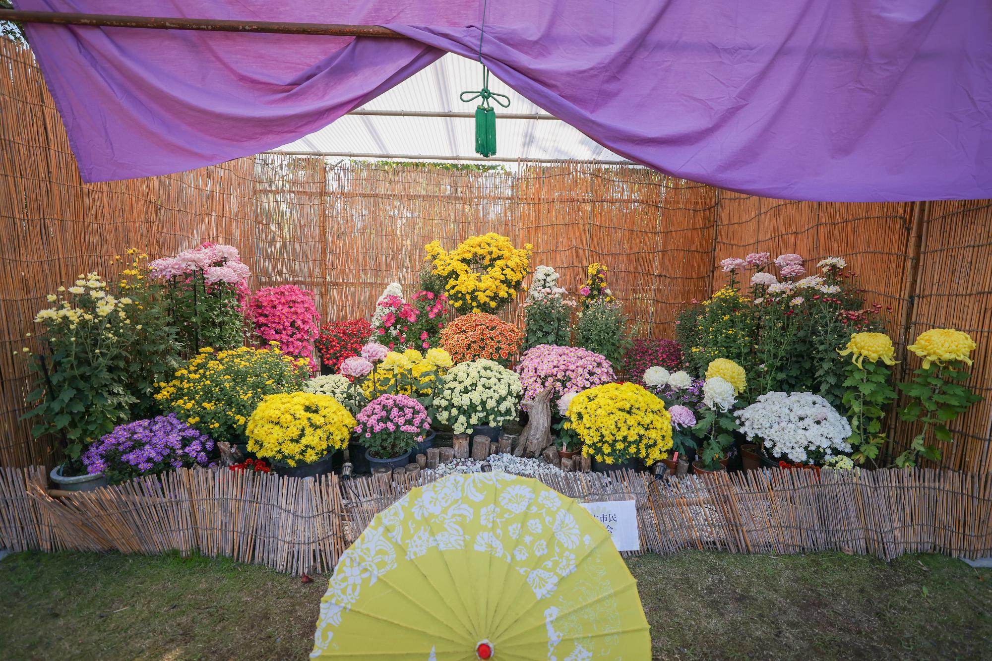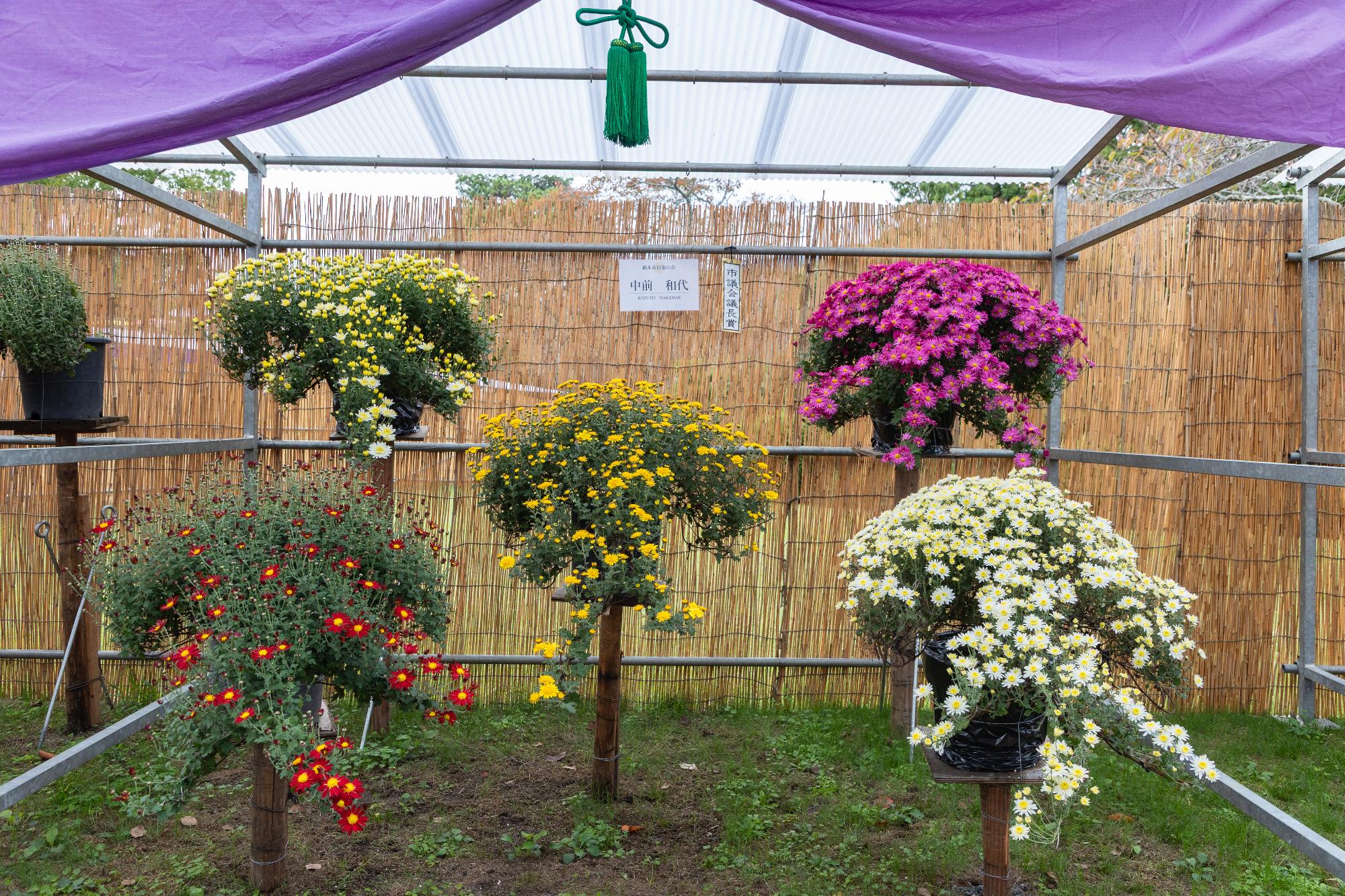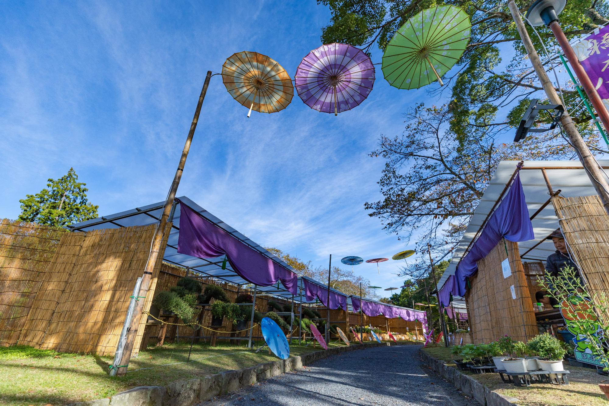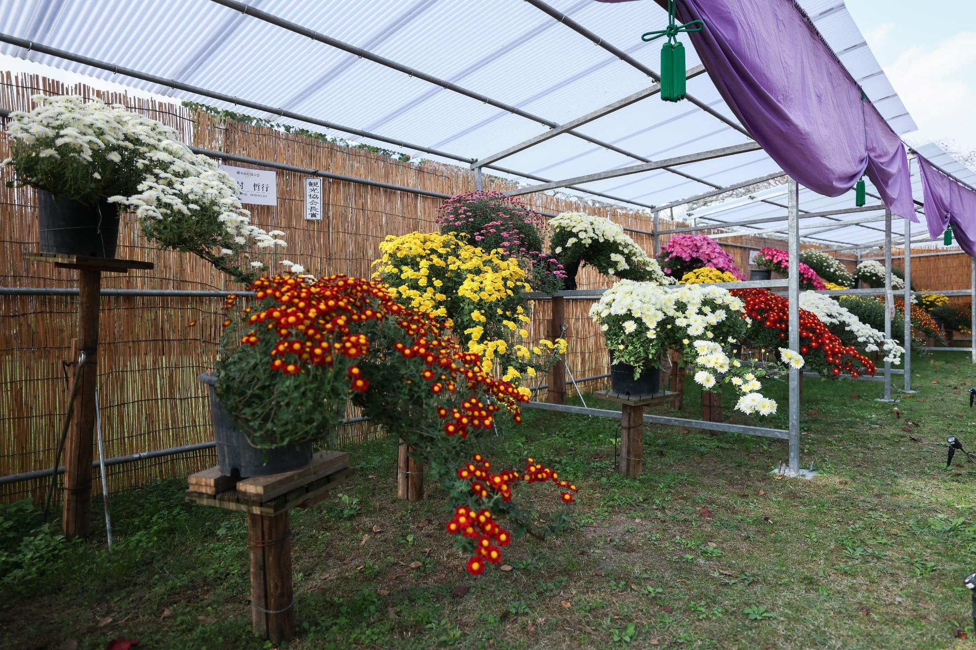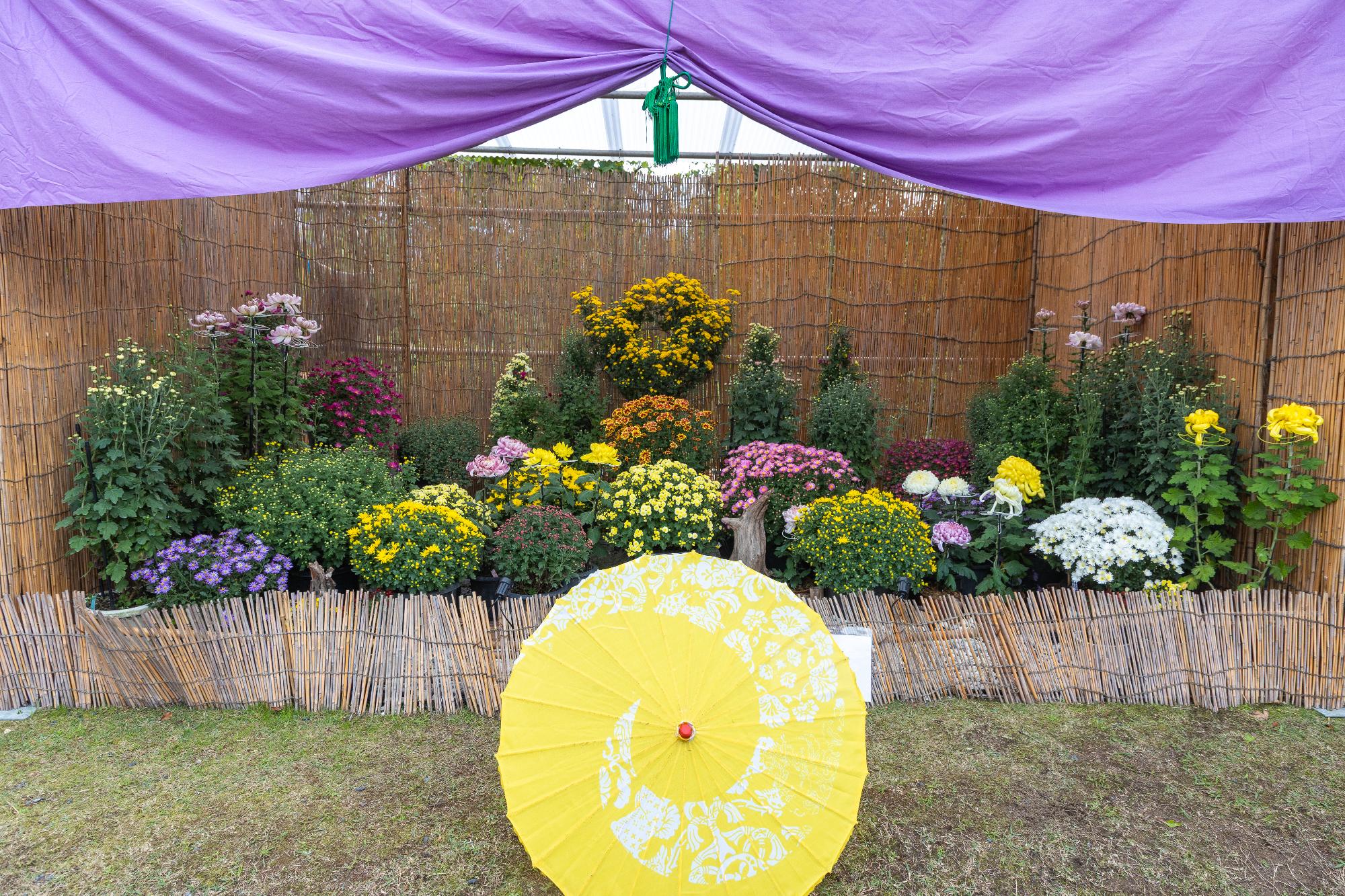 橋本市民菊の会のみなさんが丹精込めて育てた菊と和傘の装飾によりフォトジェニックな空間がお楽しみいただけます。