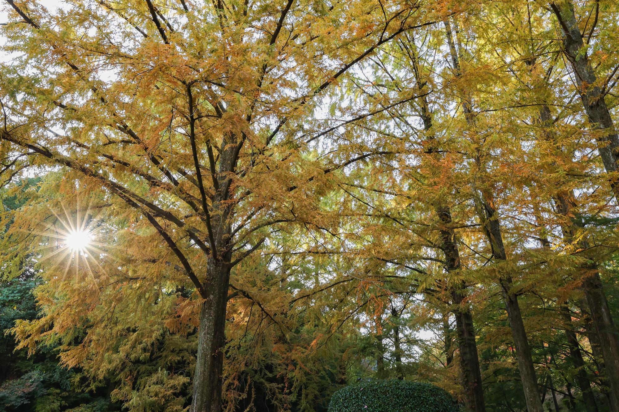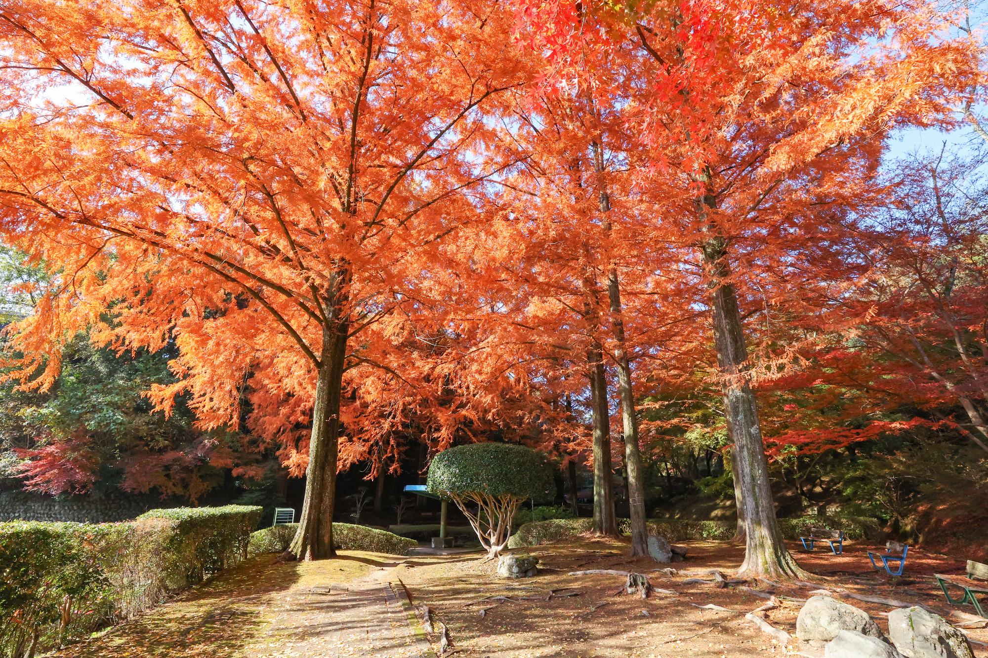 メタセコイアが鮮やかなオレンジ色に染まっています!
