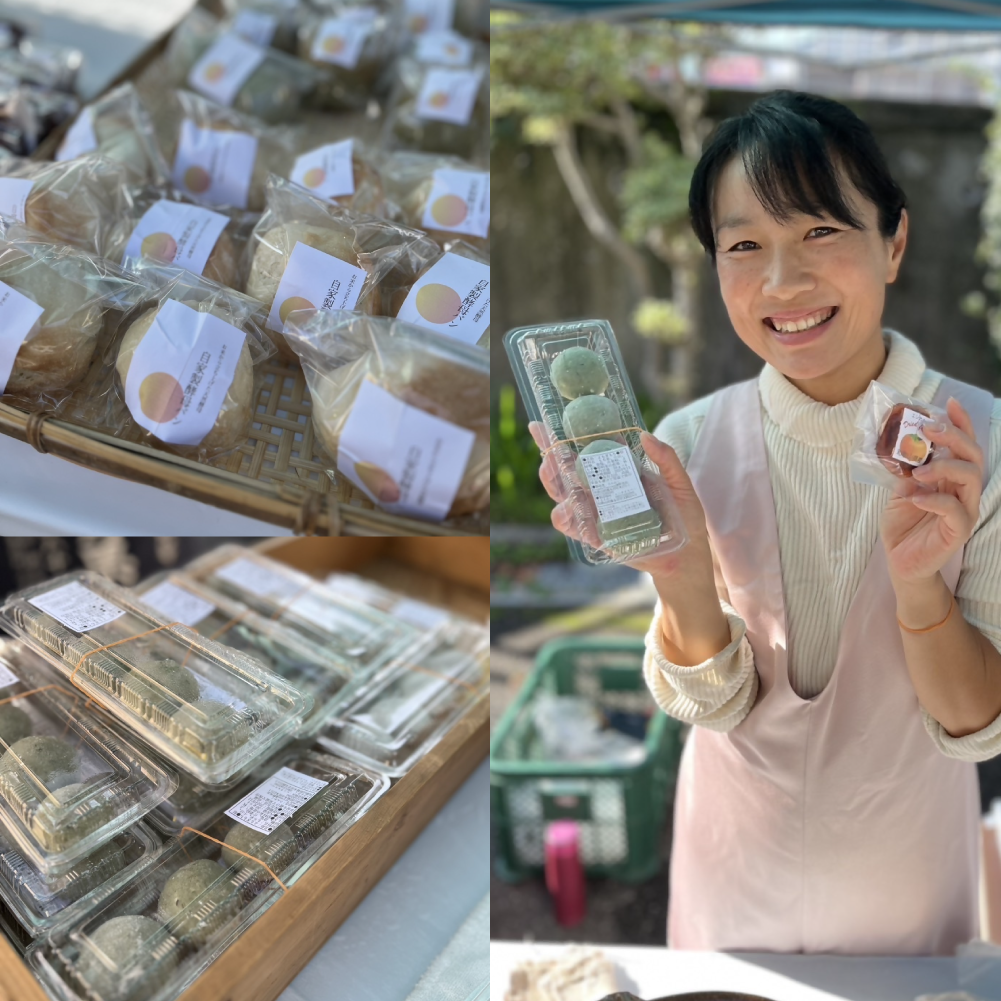どれも手作りで身体に優しい商品ばかりです。また、玄米パンはグルテンフリーで酒種酵母を混ぜ込み、しっとり香り良しのパンになっています。パウンドケーキは米粉使用です。昔ながらのおばあちゃんの味・お餅類も伊都地方の郷土料理の一つ。