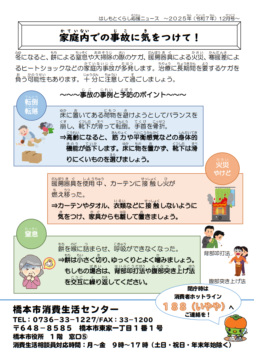 家庭内での事故に気をつけて!(令和7年12月号) (PDFファイル: 456.1KB)