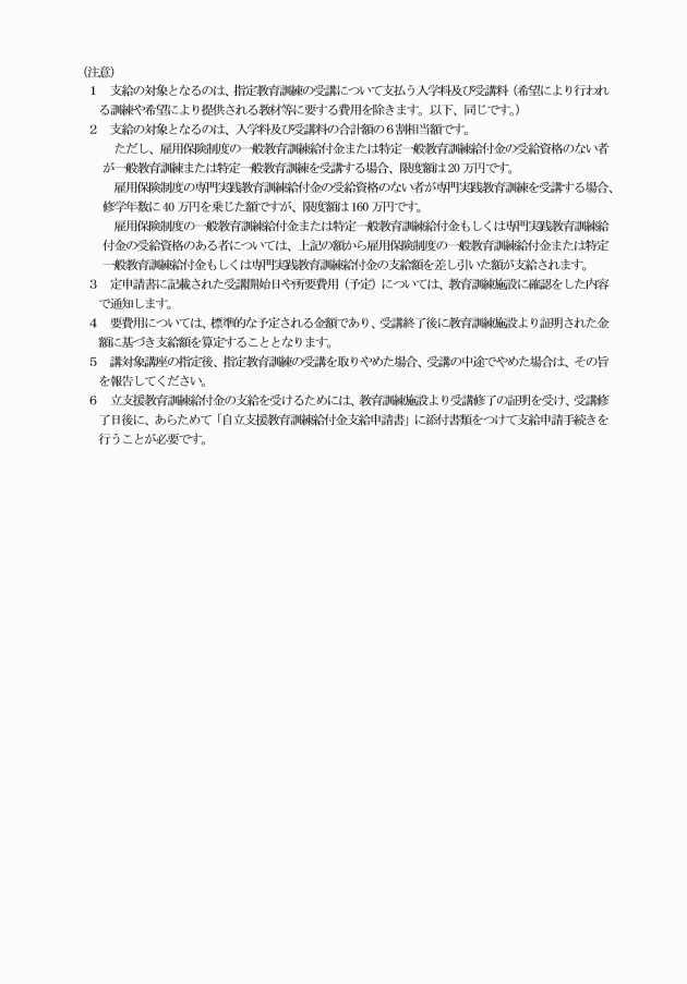 (6) 教育訓練給付金が支給されている場合は、その額を証明する書類「教育訓練給付金支給・不支給決定通知書」