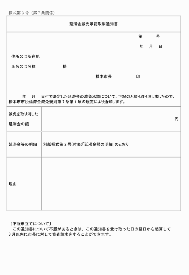 ○橋本市市税延滞金減免規則