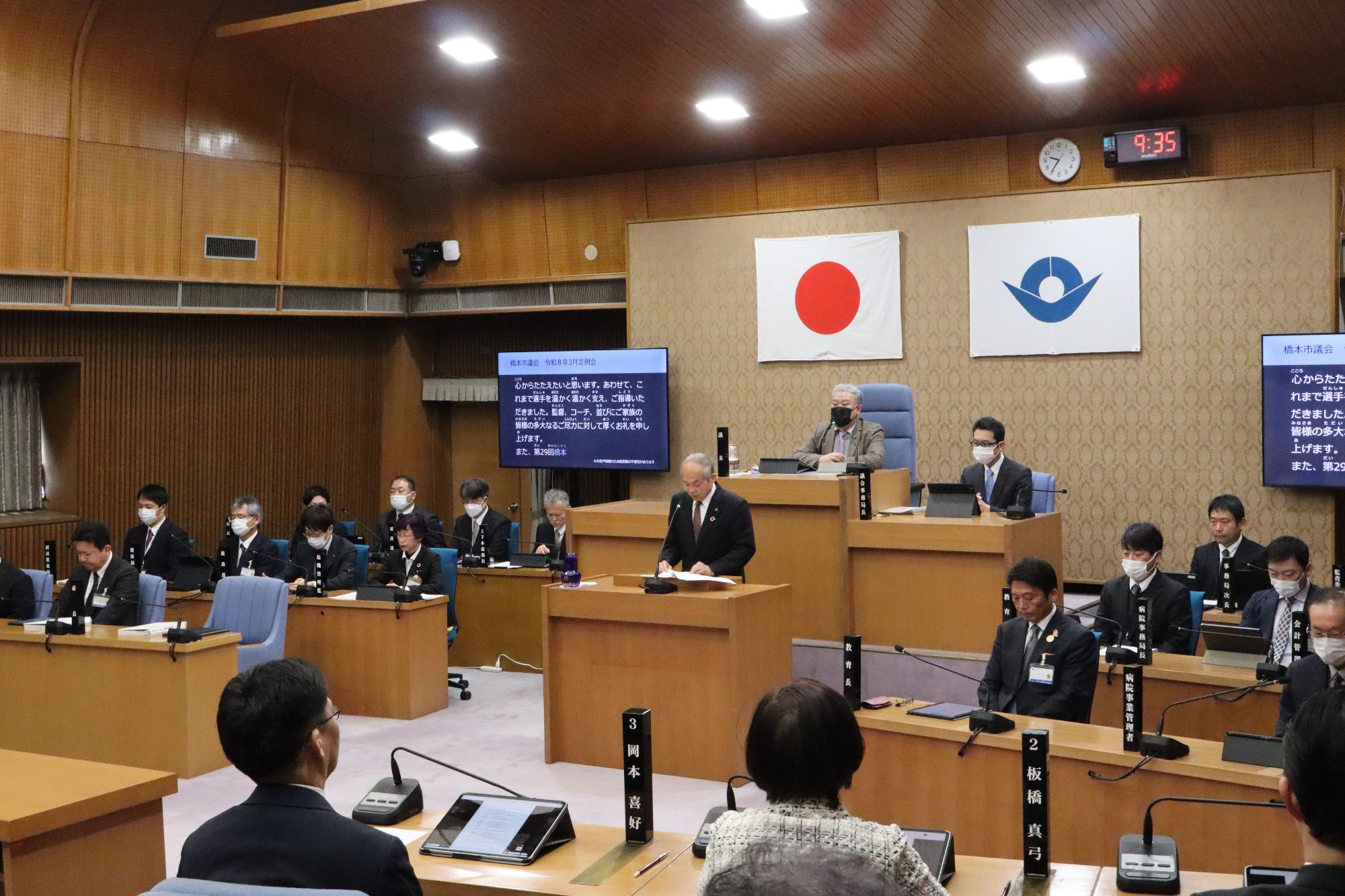 令和8年度橋本市一般会計当初予算(予算総額316億1,258万円)など議案28件について、市長から提案理由の説明がありました。