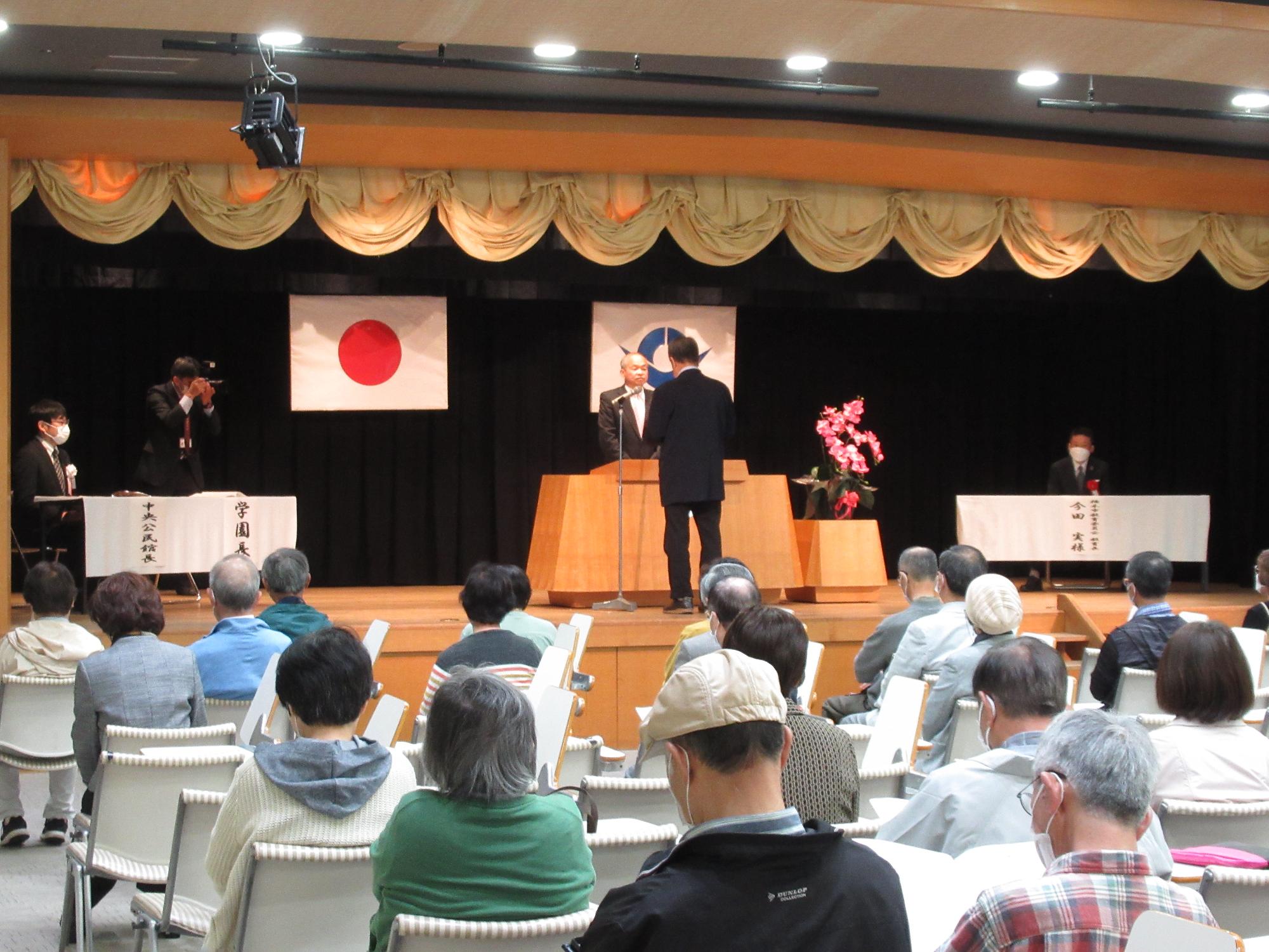 市長は「新型コロナウイルスには、いつまでも負けていられません。本市もこれから、イベントを復活させていきます。長期総合計画後期基本計画もスタートしています。誰一人取り残さないSDGsの精神を踏まえ、市民協働によるまちづくりを行い、みんなで橋本市を盛り上げていきたいと思います。皆さんのご協力をよろしくお願いします。」と挨拶しました。