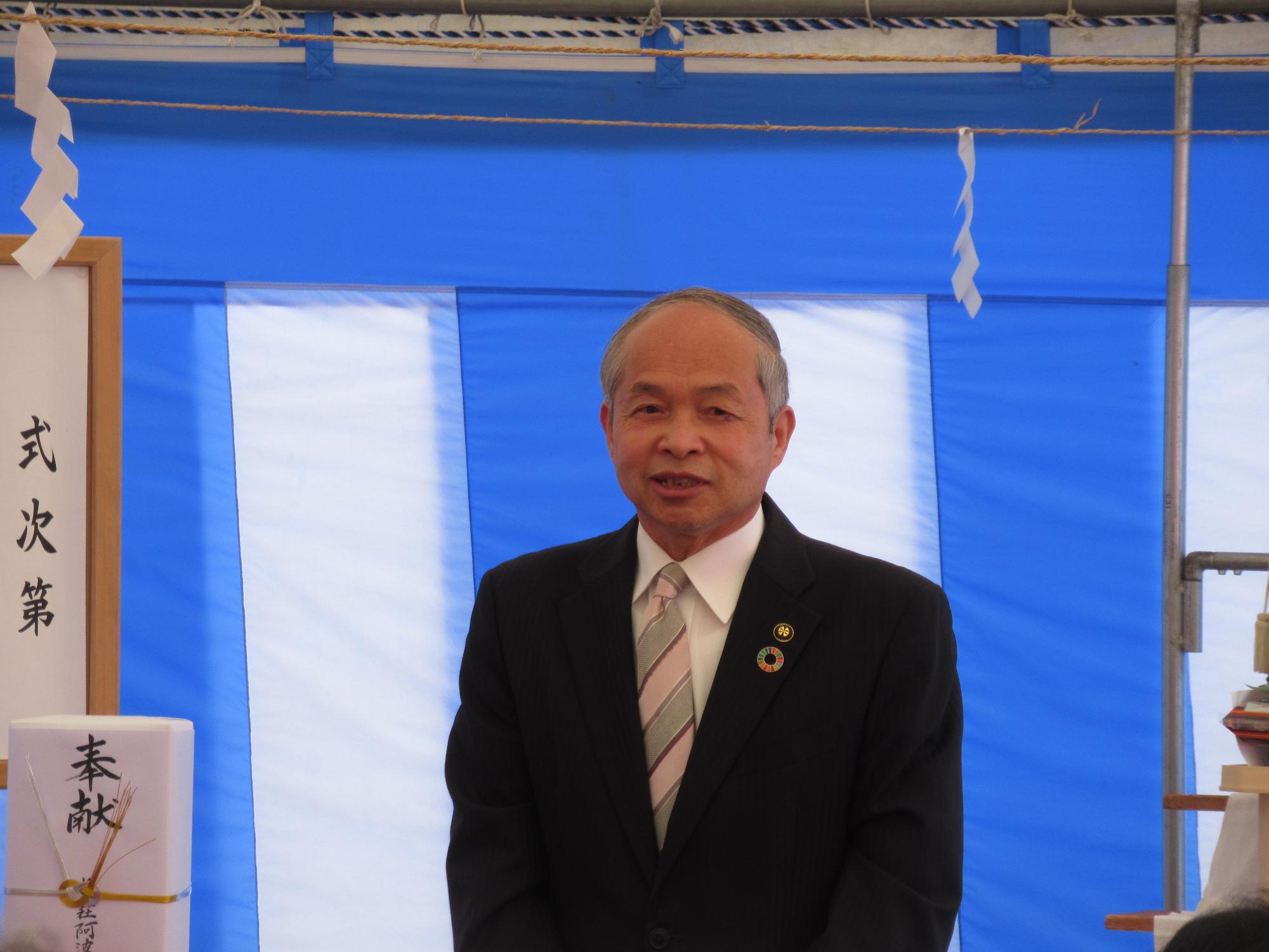 市長は「地域の皆さんには、本日に至るまで大変協力していただき感謝申し上げます。公民館と郷土資料館を連携させることで、子どもから高齢者までの学びを支援します。また、橋本市の資源を多くの皆さんに知ってもらい、協働の拠点として活用してもらえると思います。建設が安全に行われますようお願いします。」と挨拶しました。